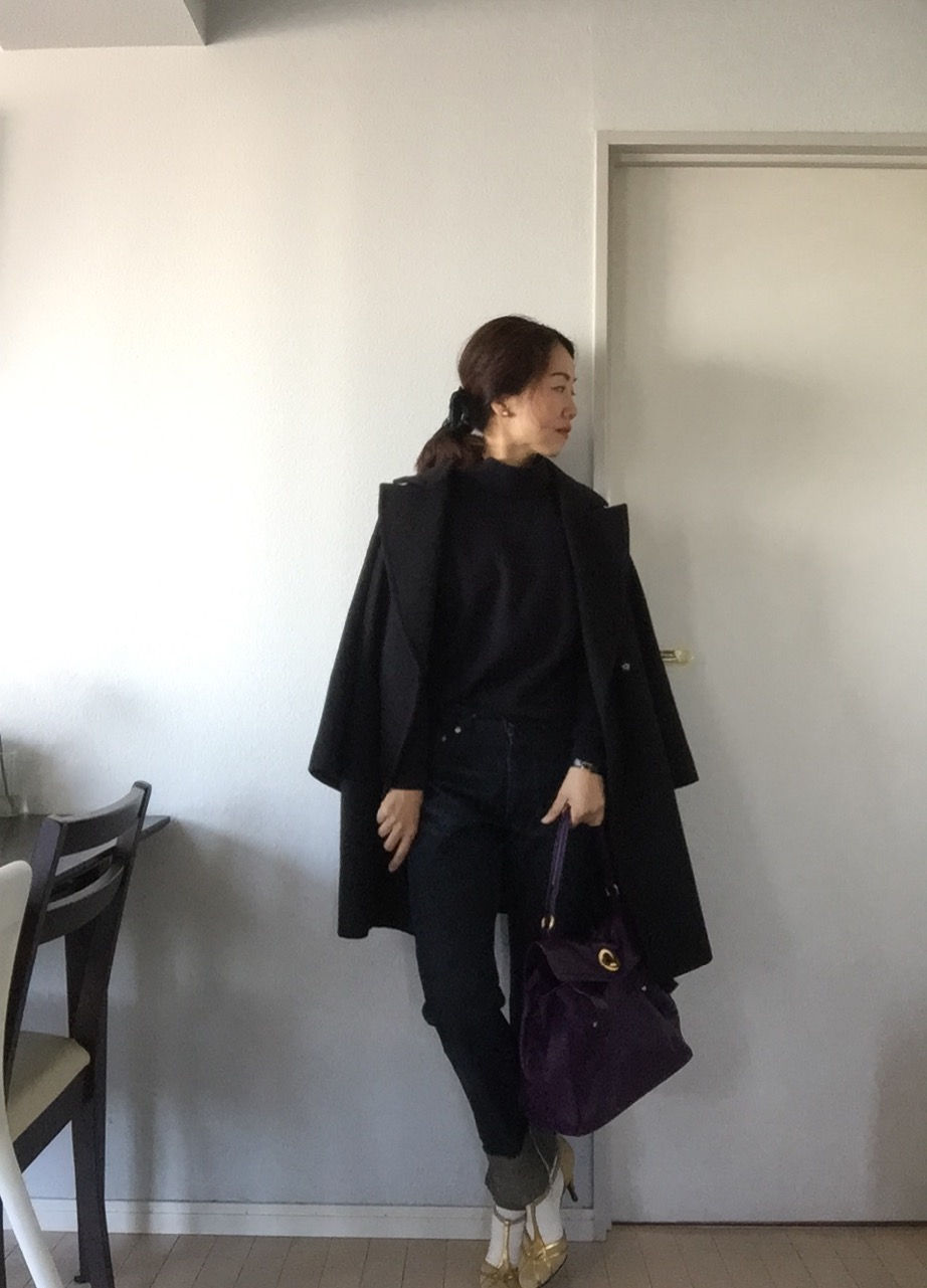 濃紺の上品な色合いと少しゆったりめなシルエット(これ実はメンズなんです)が以外に今っぽくはけました(^^)